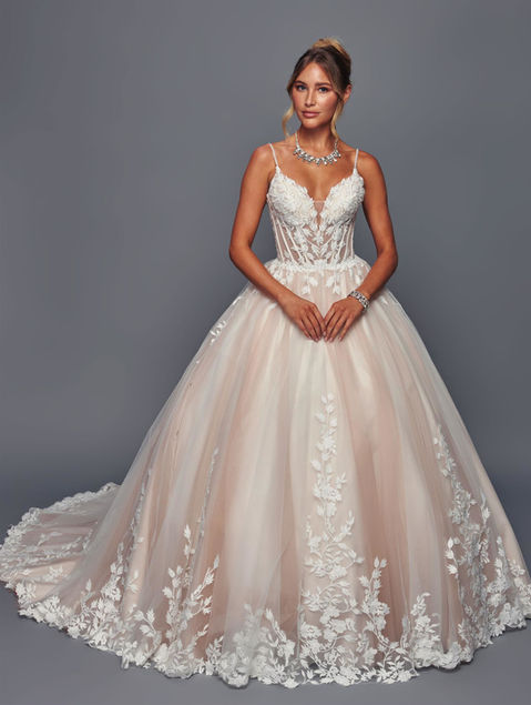SPAGETTI STRAPS V-NECKLINE A-LINE / BALLGOWN CHAPEL TRAIN WEDDING DRESS WITH BEADED LACE SEQUINS APPLIQUE.